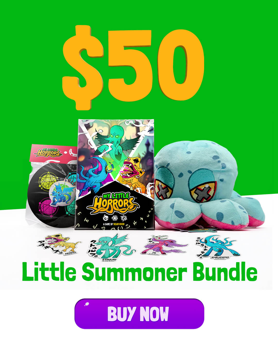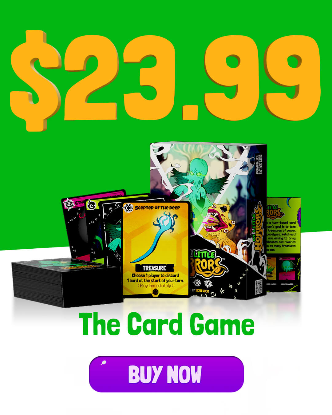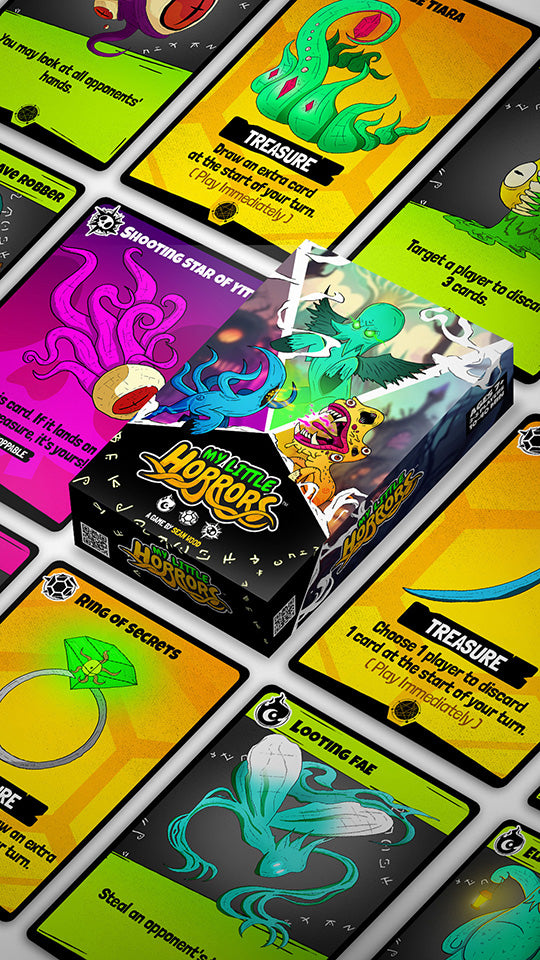 My Little Horrors is a turn-based card game where the player's goal is to take possession of the 3 treasures of power, bringing forth the apocalypse. Watch out! Your fellow players are aiming to bring your demise. Form alliances and rivalries to get your hands on as many treasures as you can.